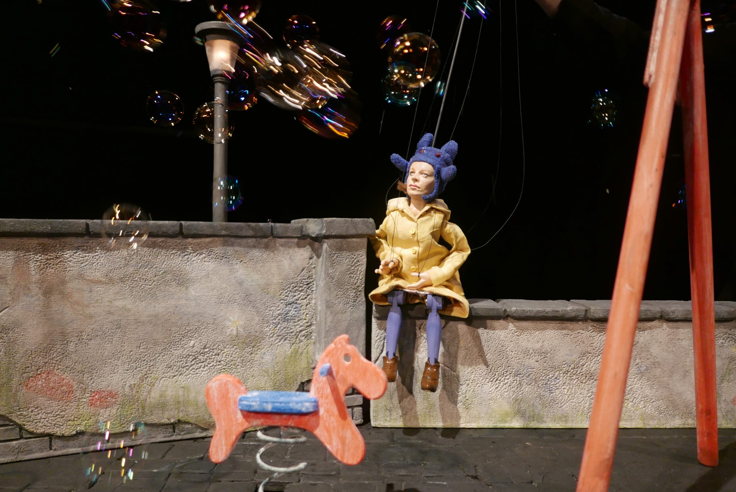 Die Vorstellungen findet auf Sitzwürfeln und Sitzhockern im Bühnenraum des Theaters statt.